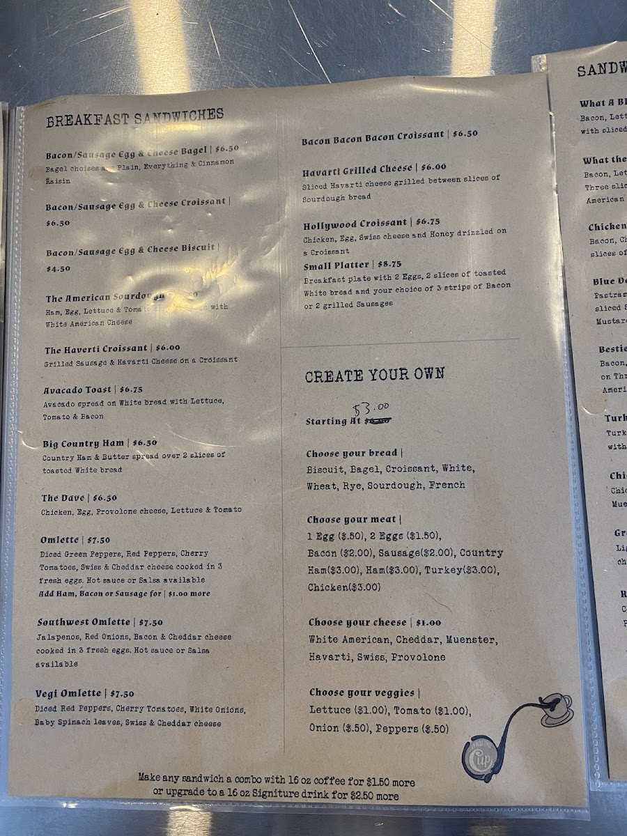 The menu is a food lover’s paradise, boasting a variety of espresso and coffee drinks that will satisfy any caffeine craving. From a comforting Red Eye for $3.00 to a rich Americano for just $2.75, each sip promises exceptional quality. But it’s not just about coffee; the food is equally impressive. The breakfast sandwiches, like the steak, egg, and cheese crunch wrap, are lauded for their deliciousness and generous portions. The Fried Bologna Sandwich and Reuben are also notable highlights worth exploring.